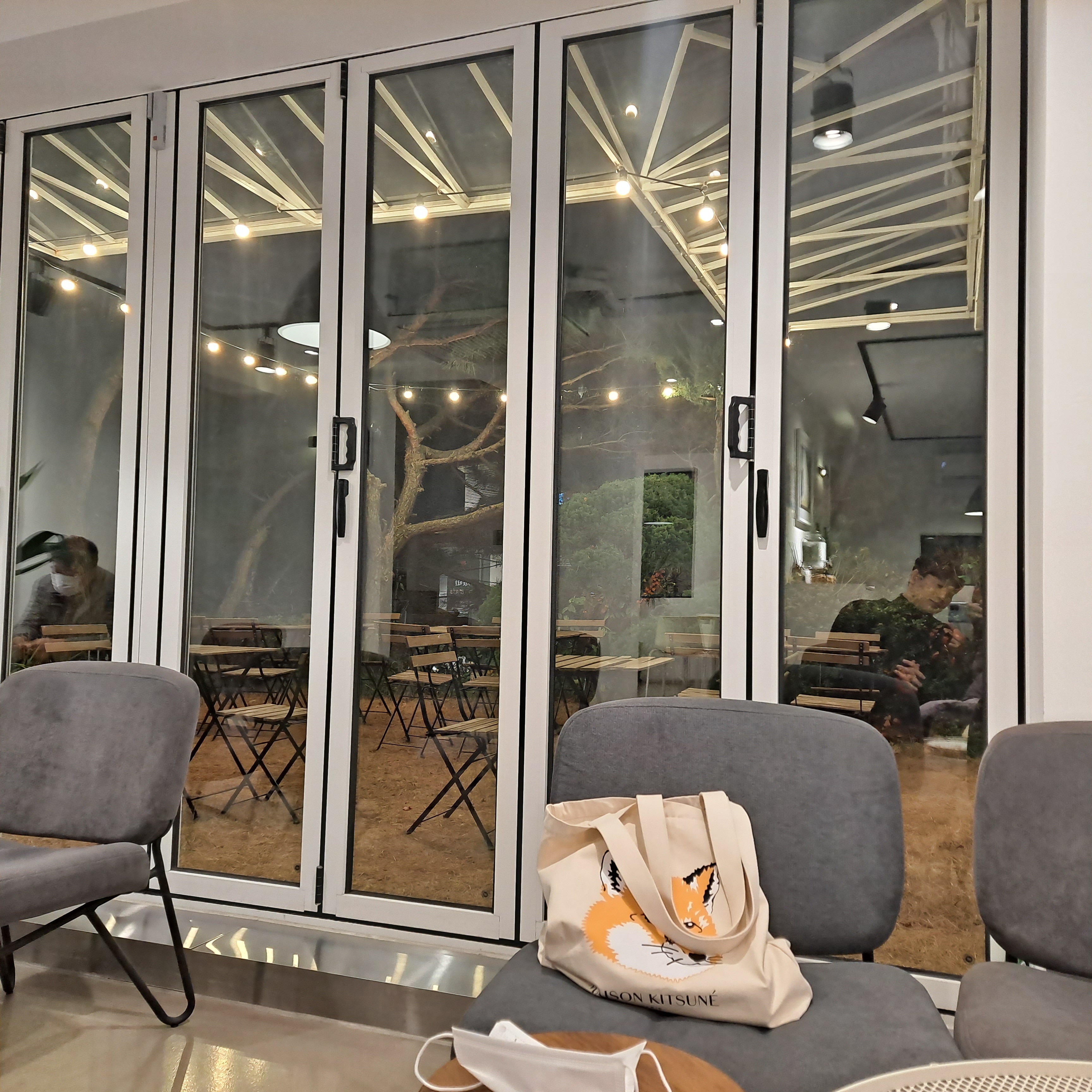 저희는 커피를 받아서 들고 지상으로 올라갔습니다. 여긴 야외테라스 ? 마당인데 날씨만 좋았으면 저기서먹었을텐데 추워서집으로들어감